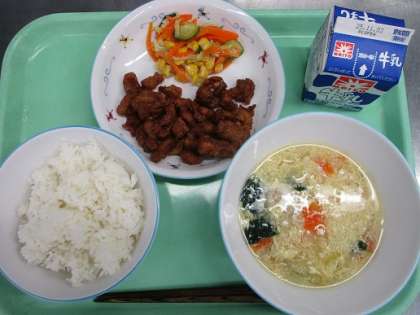 給食委員会が、全校児童に大泉第三小の好きな給食メニューのアンケートをとりました。今日は、主菜部門で1位の「畑のお肉甘辛煮」です。甘辛いタレが白いごはんによく合っていました。