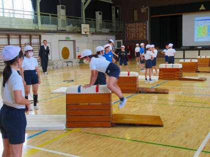 5年生の体育では、「する・見る・支える・しる」をキーワードに、跳び箱運動の学習を進めました。子どもたちは自分のめあてや役割を自分で考え、友達と声をかけ合いながら練習に取り組みました。