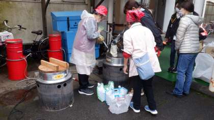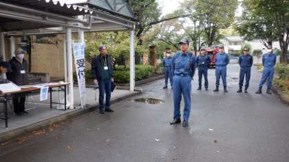 10月25日(土)に避難拠点運営連絡会主催の防災訓練を行いました。練馬区危機管理室、石神井消防署にもご協力をいただきました。当日はあいにくの雨模様でした。炊き出し、防災ビデオ視聴、簡易トイレ組み立て訓練、ペット訓練の見学などを行いました。