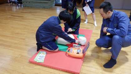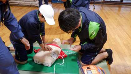 教育実習生の実習も三週間目に入りました。2年生で保健の研究授業を行いました。救命曲線について理解し、心肺蘇生法の流れを学びました。胸骨圧迫の大切さを理解し、テニスボールを使用し、それを実践しました。