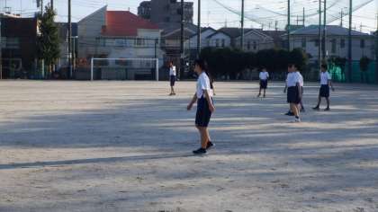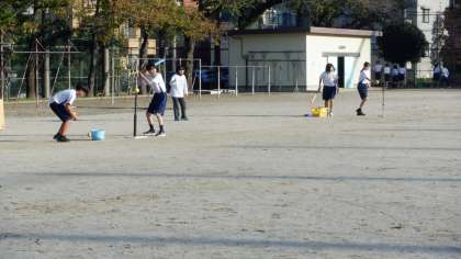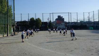 2年生の保健体育の授業です。ソフトボールの授業で、キャッチボールとティーバッティングを行いました。運動に最適な季節です。