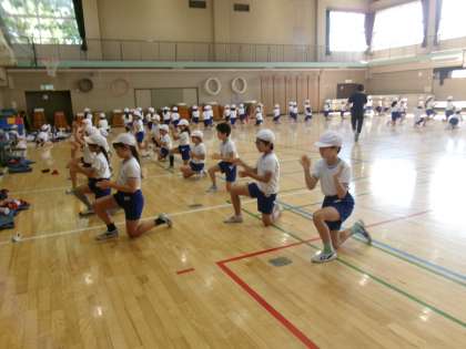 「ゴーゴーゴー」という赤白のかけ合いである運動会の歌を歌います。