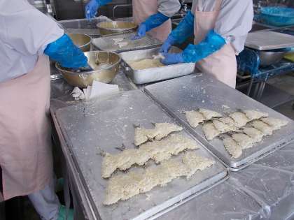 今日から15日までは「もみじの読書旬間」です。ぜひ、この機会にいろいろなお話と出会ってほしいという気持ちを込めて、6月にも実施した、図書と給食のコラボ「きたまちブックランチDays」を今回も実施します。今日は「ぼくらうまいもんフライヤーズ」というお話から「アジフライ」を作りました。絵本に出てくるアジフライのようにアジの開きを使って作りました。