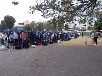今日は文化の日ですが、5年生は岩井移動教室出発日です。お天気がよく、最高のスタートとなりました。今日は祝日ということもあり、たくさんの保護者の皆様が見送りに来てくれました。先生方も、5年生を見送ったり移動教室の荷物をバスに積み込んだりするために、10人も来てくださいました。それでは元気にいってらっしゃい!