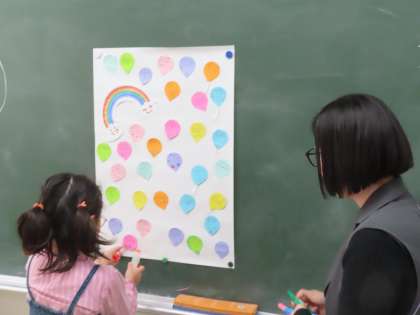 全ての学級で、「いいね!」の風船をたくさん飛ばすことになりました。心を込めて書いた風船を、模造紙に貼り付けています。
