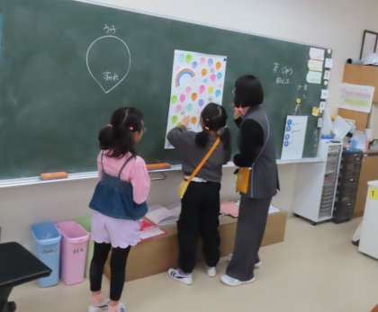 物語を読んで、かえる君へのお手紙を書いています。優しいかえる君に、みんなの気持ちが届きますように。