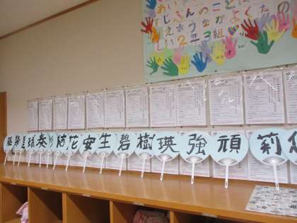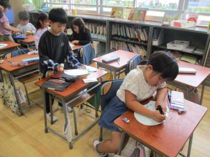 図工の時間にうちわ作りをしました。毎日運動会の表現の練習を頑張っている子供たち。運動会では、自分の思いを込めた一文字で作ったうちわを持ってかっこよく踊ります。当日をぜひ楽しみにしていてください。