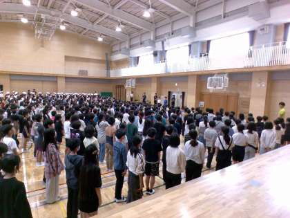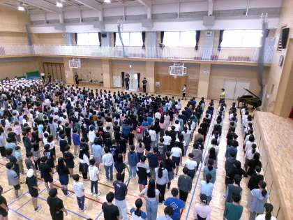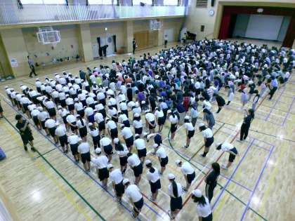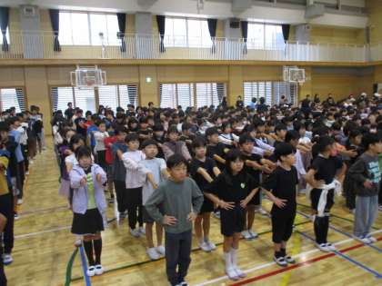本日は昨夜の雨天のため、グラウンドの状態や気温を考慮し、体育館での学校全体での運動会練習を行いました。開会式と閉会式の流れを確認しながら、運動会の歌や係児童の動きの確認を行いました。朝早く、肌寒い中ではありましたが、真剣に取り組もうとする児童の姿が見られました。