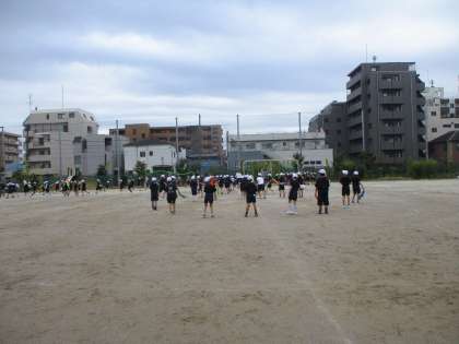 先週木曜日の朝の時間に、5・6年生で校庭の石拾いを行いました。自分たちの演技のためだけでなく、全校の種目がうまくいくようにと、痛いかどうか確認しながら石を拾いました。