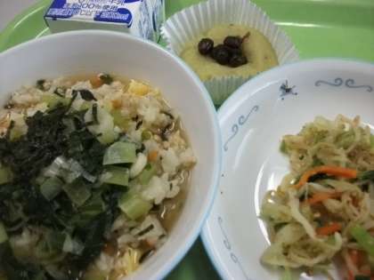 今日は、鹿児島の郷土料理「鶏飯・野菜のゴマみそ・からいもねったぽ(薩摩芋餅)」でした。鶏飯はお茶漬けに近い、奄美地域を代表する郷土料理です。「からいも」とは薩摩芋のこと、「ねったぽ」は練ってつくことからこの名前がついたと言われています。