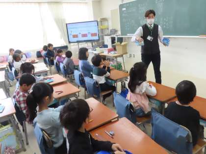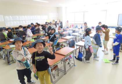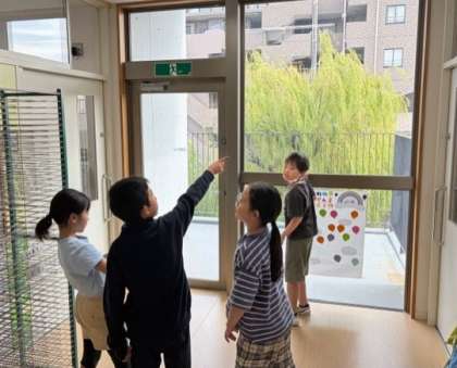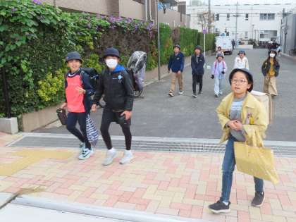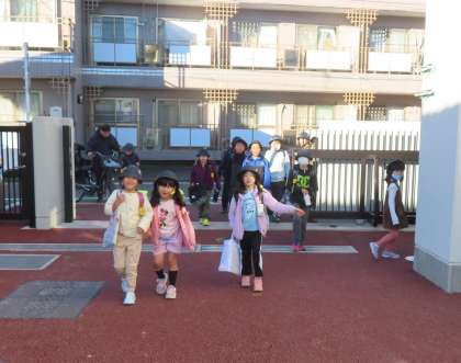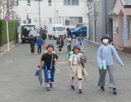 「あいさつ競争、今何人?」と聞くと、「5人」「3人」「8人」と声が返ってきました。今日も元気に過ごしましょう!