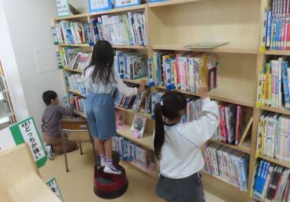 静かに本を選んで、落ち着いて読んでいます。絵本の世界に浸れているかな?