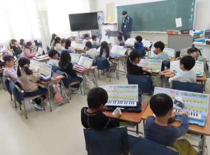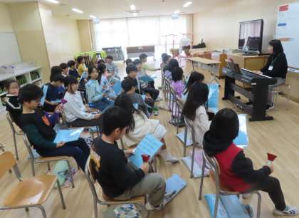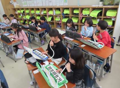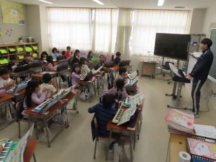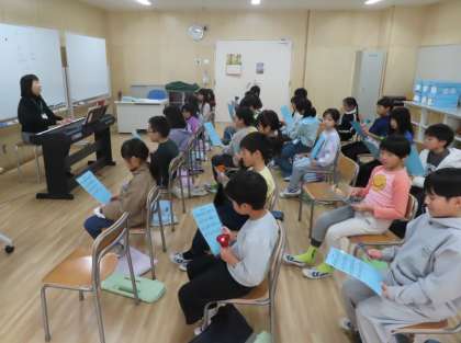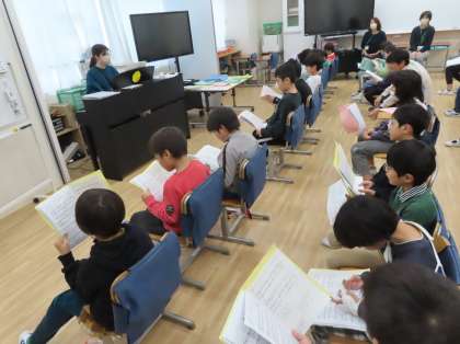 全員で秋の曲を合唱しています。どこを歌っているのか、しっかりと楽譜で確認できるようになってきました。
