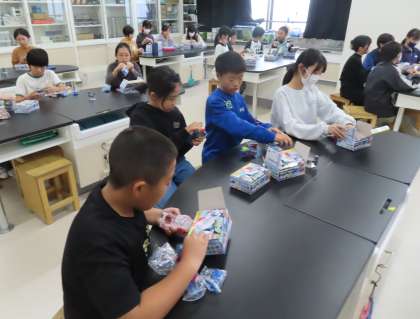 電気をためるコンデンサーのはたらきを調べていきます。が、そもそも電気をためるとはどういうことか? みんな興味津々です。