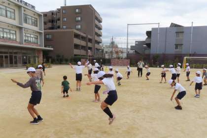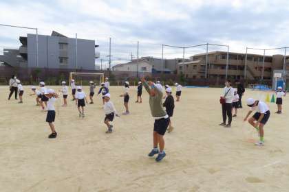 前跳び、後ろ跳び、何度もチャレンジしています。特に後ろ跳びは飛び上がるタイミングが難しい。頑張っています!