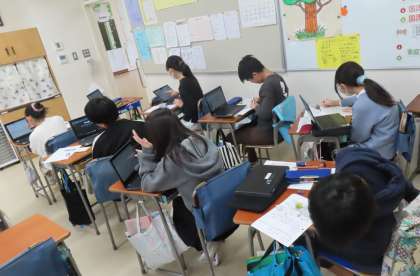 6年生が、上北小の天井の穴(パネルにあいた穴)を数えたと報告に来てくれました。3階が35万3430個、2階が34万…、とてつもない数でびっくり。ご苦労様でした!