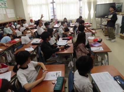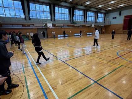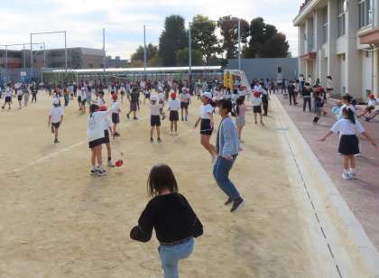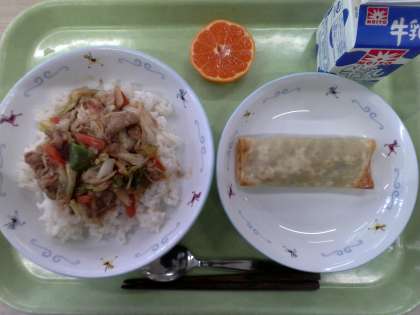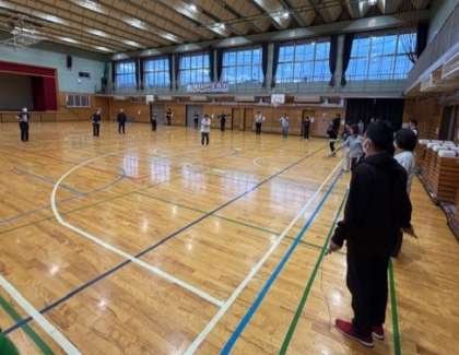 ・ねり丸キャベツのホイコーロー丼 ・ねり丸キャベツの棒餃子 ・お花みかん 《ランチタイム》 今日は練馬区一斉給食です。練馬区の畑で収穫された新鮮な、ねり丸キャベツが届きました。上北小では、ねり丸キャベツをたっぷり使って、「ホイコーロー丼」と「棒餃子」を作りました。 11/12 4年 ベースボール型ゲーム