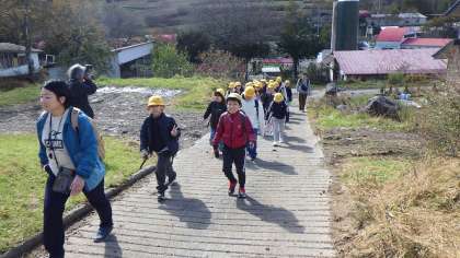 「秋さがし」です。 子どもたちは、見付けたのをとにかく教員たちに見せたくてしかたがありません。