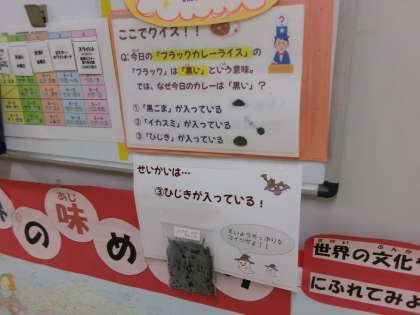 ブラックの理由は、給食の時間に見るランチタイムズでクイズにしました。