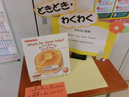 今回の本は、英語訳のついた絵本、「きょうのおやつはなんだろな?(What's For Snack Today?)」の中に出てくる「キャロットケーキ(carrot cake)」でした。