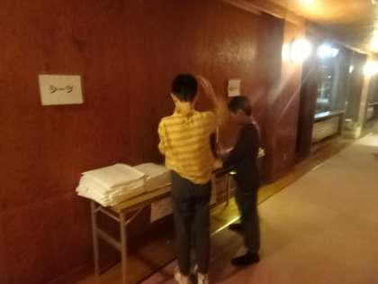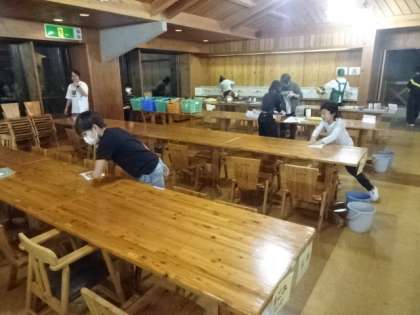 食べ終わったあと、食事係さんがテーブルをふいています!