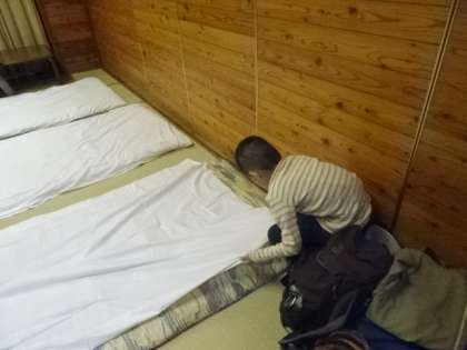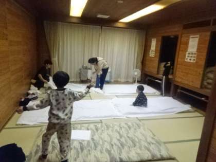みんなで協力して先生にも助けてもらってお布団を敷いています。おやすみなさい!