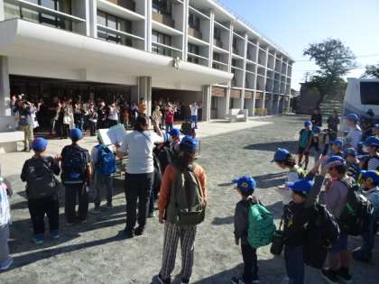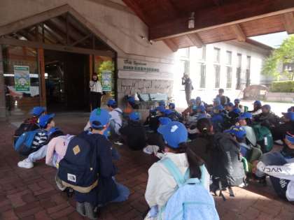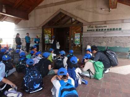 予定よりも30分程早くベルデ軽井沢に到着しました。今回、大泉小、大泉第三小、大泉学園小、谷原小の4校で行っています。既に2校が到着していました。玄関では、ベルデ軽井沢の職員の皆様、看護師さんが笑顔で迎えてくださいました!