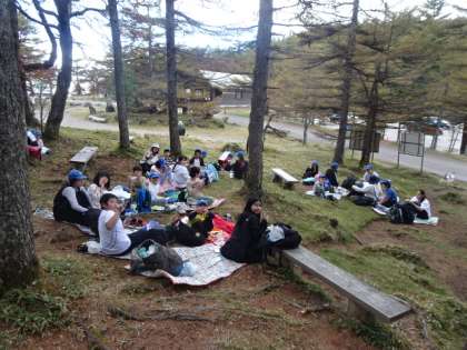 湿原を歩いたあとはお待ちかねのお弁当タイムです。おいしくいただきエネルギーチャージ。トイレを済ませてバスに乗り、宿舎のベルデ軽井沢に向かいます!