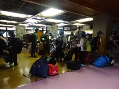 荷物をバスから降ろしたあと、玄関のところでベルデ軽井沢の職員の皆様、看護師さんとご挨拶をしました。6年生のお友達が代表で「お願いします」の気持ちを言葉で伝えました。いよいよ3日間がスタートします。