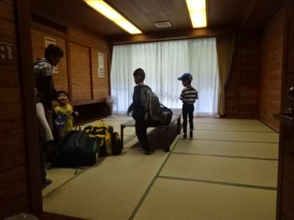 ベルデ軽井沢の建物に入り、やわらっ子たちはとても嬉しそうです!広いお部屋に入り、にこにこでぐるぐる部屋の中をまわったり、引率の先生方と嬉しそうにお話したりして過ごしていました。荷物をおいて、避難訓練、宿舎の様子を見学し、身支度をスタートします。