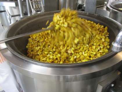 写真は蜜を作っている様子と蜜を揚げたさつま芋にからめている様子です。