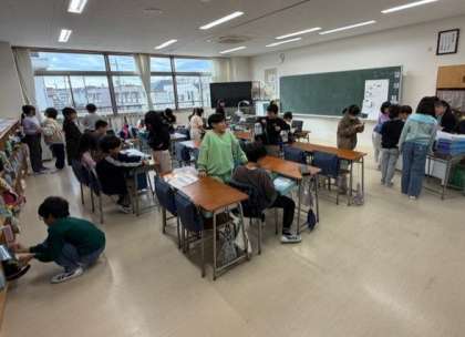 今日から3日間、石神井中学校の生徒さんが、職場体験に来ています。早速低・中・高学年に分かれて、授業のお手伝い。3日間頑張って!