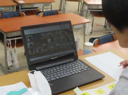 初めてのリモート朝の会。接続にご協力ありがとうございます。子供たちの笑顔が見られると安心します。静かに一日過ごしてくださいね。