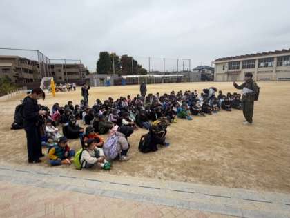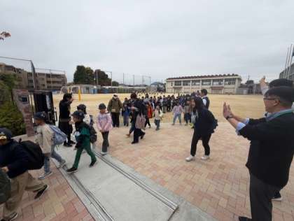 今日は井草森公園での生活科見学。やくそくを確認して、これから出発します!