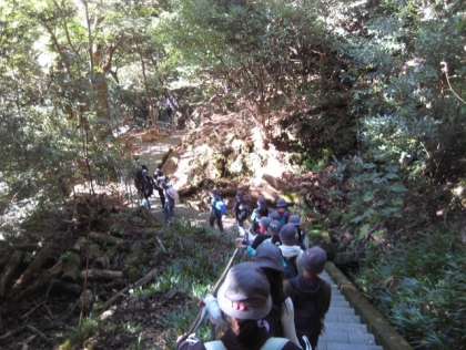 下山しました。途中、登山されている方々に「こんにちは」と爽やかな挨拶をしていました。 広場で昼ごはんを食べました。お弁当を食べながら、お家のことを思い出したようで、「早く帰りたい」という子もいました。 時間があったので、少し遊びました。 |