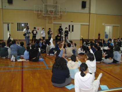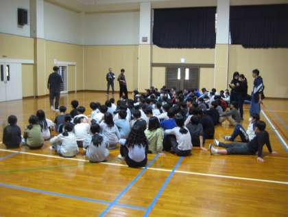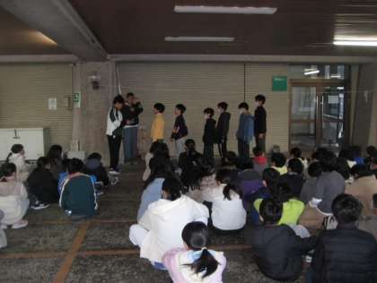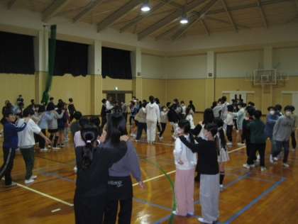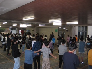 最後の夜は体育館でレクをしました。ますレク係が「岩井クイズ」をしました。そして、「じゃんけん列車」をして盛り上がってきたところで、運動会でがんばった「ソーラン」や「わっしょい」を元気よく踊りました。最後に「今日の日はさようなら」を歌って終えました。 子供たちの笑顔がとても素晴らしかったです。 5年 岩井移動教室 2日目その5