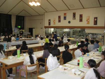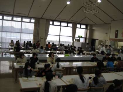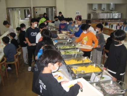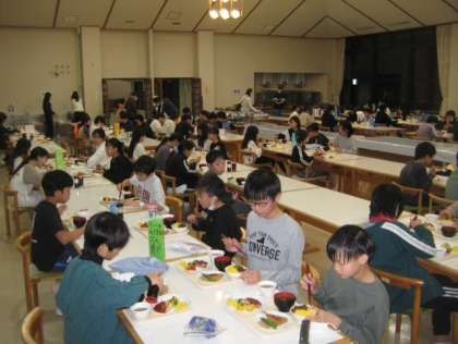 移動教室最後の夕食となりました。子供たちの大好きなカレーライスだったためか、たくさん食べていました。 5年 岩井移動教室 2日目その4