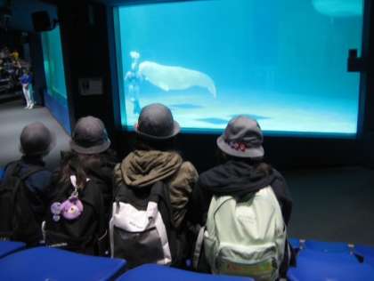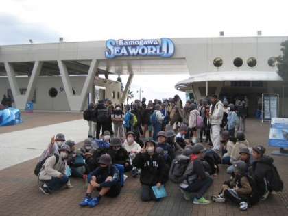 鴨川シーワールドに到着しました。班で仲良くショーなど観ています。 11月17日の給食