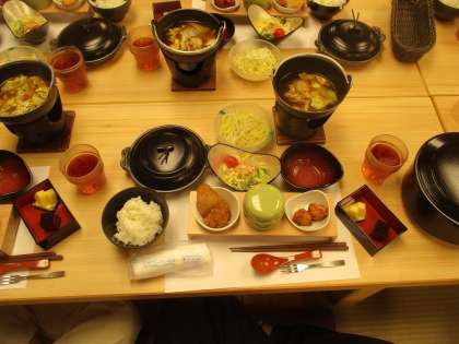 待ちに待った夕食です。おいしいすき焼きをおなか一杯食べました