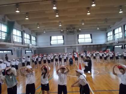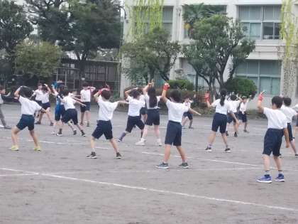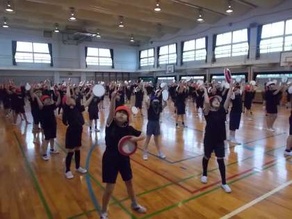 ソーラン節の仕上げに入っています。「筋肉痛がすごいです!」という子もいます。一生懸命がんばっています。