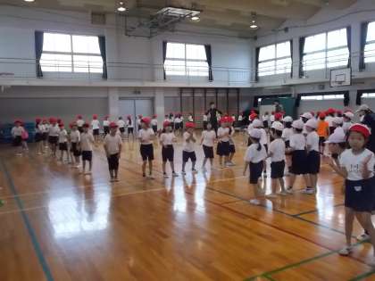 雨のため体育館でのリハーサル。1年生はエア玉入れをしていました。エアでもがんばる1年生でした!