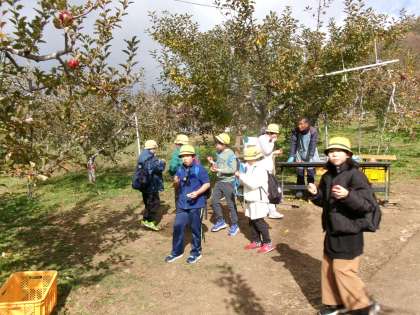 シナノゴールド、シナノスイート、アルプス乙女、サンふじがとれます。食べ放題と聞いて、大盛り上がり!。いろんなりんごを味見して、お好みが人によって違いました。私はサンふじがおいしかった。3つくらい食べました。