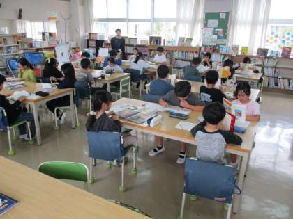 10月は「読書月間」でした。そのため、学校生活の中で本を読む活動がたくさん設けられていました。その1つに4年生以上が行う「味見読書」という活動があります。グループになって数冊の本を読むのですが、1冊4分間だけ読むという「味見」のような読み方をして最後に感想を交流します。子供たちは「続きが気になった」「借りて読みたい」という感想をもっていました。