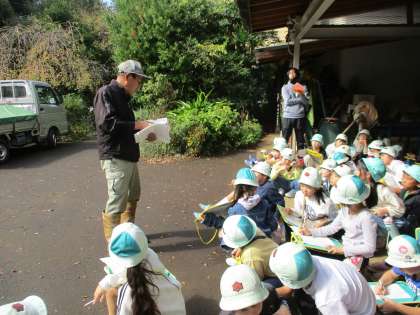 10月27日(月)に社会科の学習で、近所の井口さんの農園へ見学に行きました。畑の様子を見たり、井口さんから野菜づくりについてたくさんお話を聞いたりしました。1年間に4万個のキャベツを収穫していることを知り、とても驚いていました。