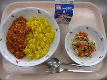 チリビーンズライス 牛乳 ガーリックサラダ 今日の給食【11月27日(木)】