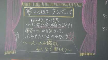 残念ながら6年生は出演できません。 6年生の保護者の皆様におかれましては大変申し訳ございません。 12月13日(土)の学校公開を楽しみにしていただければ幸いです。 また、他の学年の中にも体調を崩している児童がいます。もし、明日朝の欠席状況によっては、対応等が生じるところが出てくるかもしれませんが、子どもたちの健康状況を第一に考えて対応してまりりたいと存じますのでご理解ご協力をお願いいたします。 「お父さん、お母さんに見てもらうんだ」「おばあちゃんもくるよ」などと言いながら下校していきました。誰よりも見てほしいのがご家族なのだと思います。 ご体調やご都合に支障がないようでしたら、ぜひご鑑賞いただきまして、子どもたちへの温かい励ましと称賛をお願いできればありがたいです。 今回は、お子様の学年のみではなく、他学年の鑑賞もしていただけます。こちらについてもお時間が許すようでしたら、ぜひ!よろしくお願いいたします。 保護者・地域の皆様のご来校を心よりお待ちしております! 6年生を早めに下校させましたので、頼もしい6年生の力を借りられずでしたが、教職員全員で整備いたしました。準備は整いました。