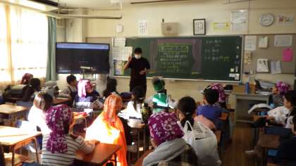 3年生の劇が終わると、みんなが「久しぶり!」と言って声を掛けていました。 学校は違えど、同じ地域に住んでいる仲間です。参観していただき大変ありがとうございました。 お父様のお話では、学校とは別に芸術的な取組に関わっていらっしゃるとのこと。 子どもの能力の深さを感じました。 写真が悪くて申し訳ありませんが、とても素敵な関わりが見られました。