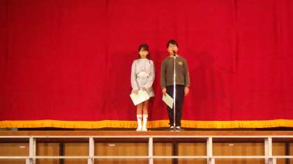 5年生が頑張りました。 6年生の「エルコス」に関するクイズの答えは、12月13日(土)に持ち越されました。 最後は、6年生の終わりの言葉です。 教室から駆け付けてくれ、準備していた言葉をしっかりと伝えていました。