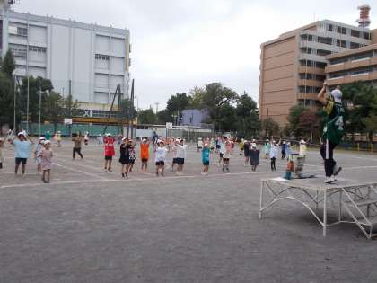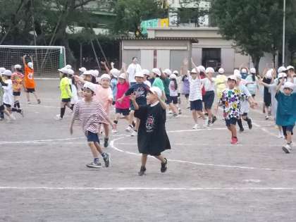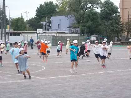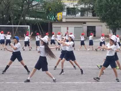 4年生も校庭で運動会練習を始めました。異国情緒を感じる曲に合わせて踊っています。