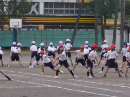 運動会練習、かわいらしい1年生が校庭にいます。今日は暑い1日となっていますが、水分補給をしながら本番に向けて一生懸命です!がんばって!!